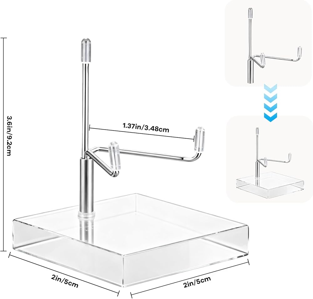 • 【3. Premium Acrylic & Metal Construction】 Crafted from crystal-clear acrylic and sturdy silver-metal arms, these stands combine durability with minimalist elegance. The materials resist yellowing, corrosion, and deformation, ensuring long-term use. Transparent bases create a floating effect that highlights your items' natural beauty.