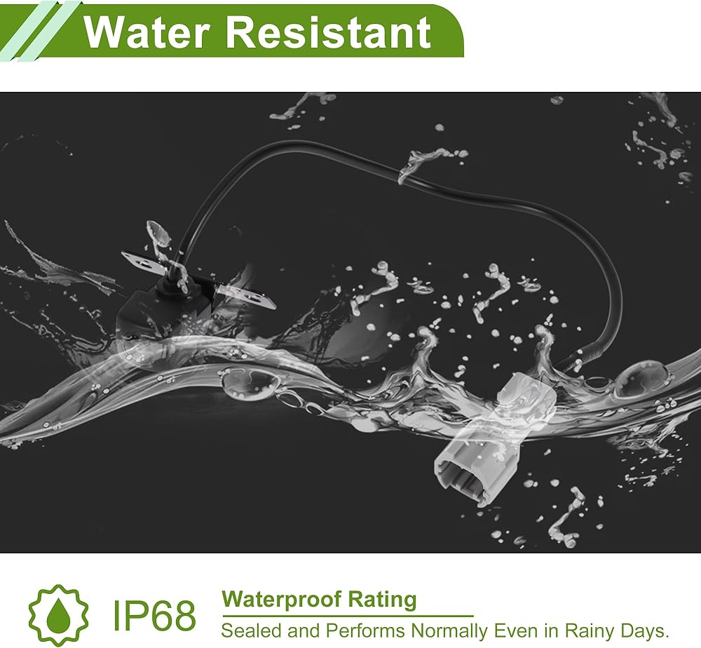 Specification:With 170 degree wide view detection angle and 1920x1080 camera resolution, it performs normally also as night vision camera, even in the faint light like a dark underground garage. The waterproof rating is IP68 for all weather. So it will not be affected in harsh environments like rainy days.