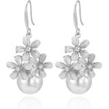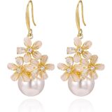 ELEGANT DESIGN: Beautiful drop earrings featuring delicate floral clusters adorned with shimmering crystals and lustrous pearl accents in gold-tone finish