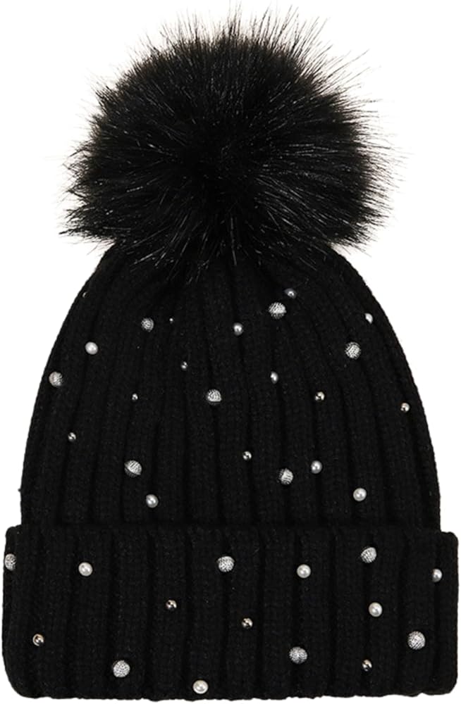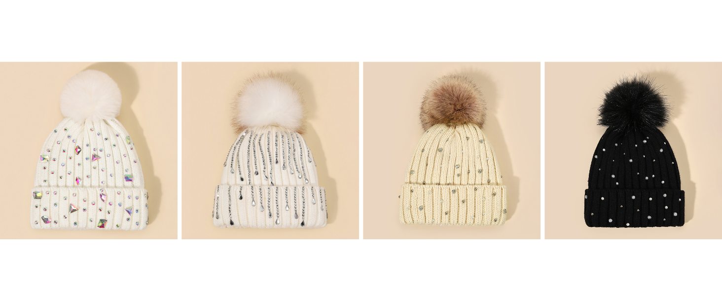 Gift: This glitter rhinestone beanie makes a perfect seasonal gift, making it a thoughtful gift for birthdays, Christmas, or the winter holidays. This warm, fleece-lined hat features a stretch-knit construction and is sure to delight anyone who receives it, combining warmth and comfort with stylish details like rhinestones and pom-poms