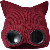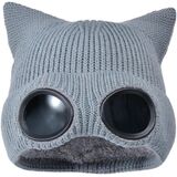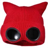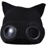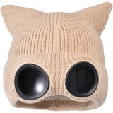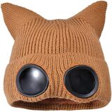 Faux Goggles Aviator Style: Knitted cat ear beanie hat features decorative goggles on the crown for a vintage pilot look; Adds character and fun to your winter outfit while keeping you stylish and warm