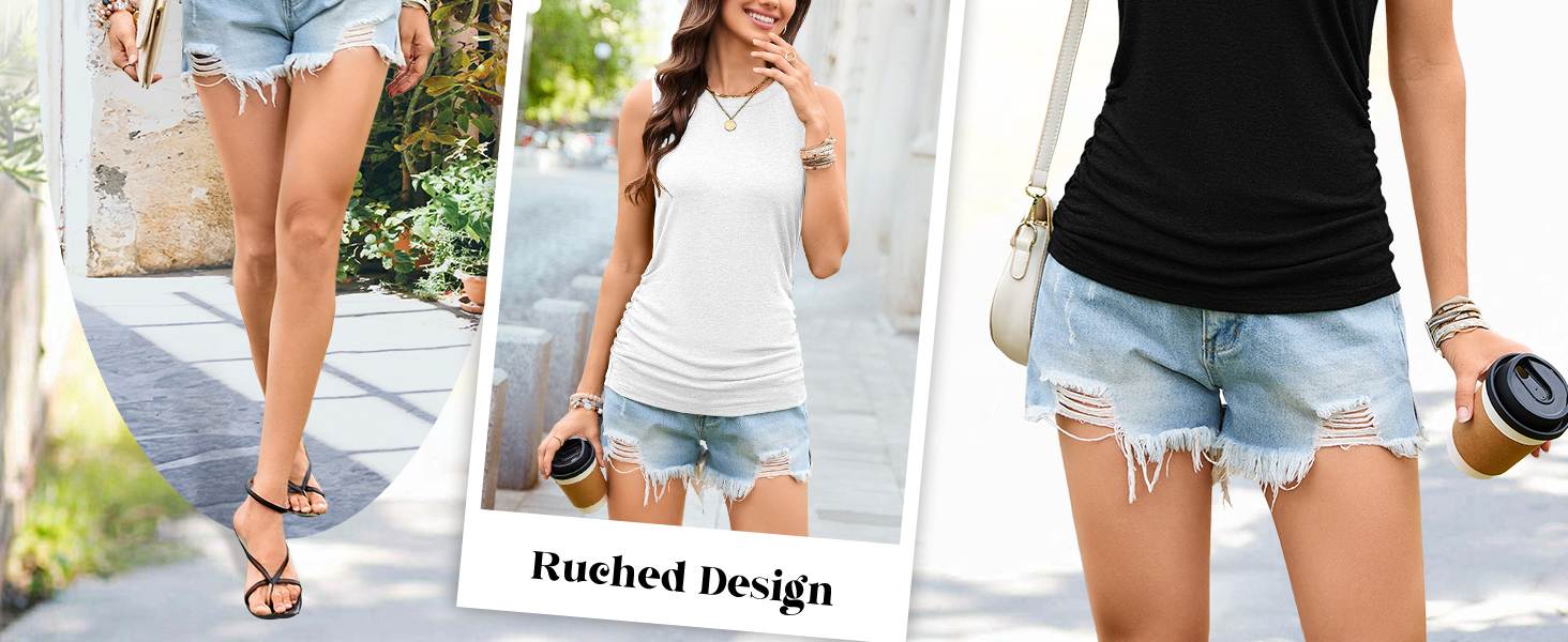 Soft Material: Womens ruched tank tops made from stretchy soft fabric, comfy and skin friendly, lightweight and breathable fabric will keep you cool all summer