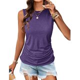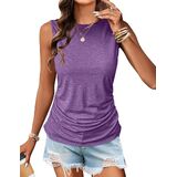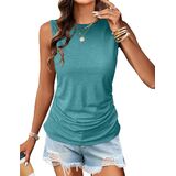 Fashion Features: Womens summer tops feature ruched design to hide belly, crew neck, sleeveless, solid color; slimming fit design shows off your beautiful body curves, making you look charming and fashionable when you wear it