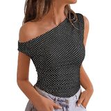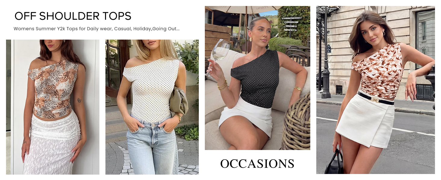 Dot White Black Swiss Dots Beach Vacation Fashion / Dot Black White Off Shoulder Tops / Floral Brown Going Out Tops / Brown Leopard Sexy Y2k Shirts