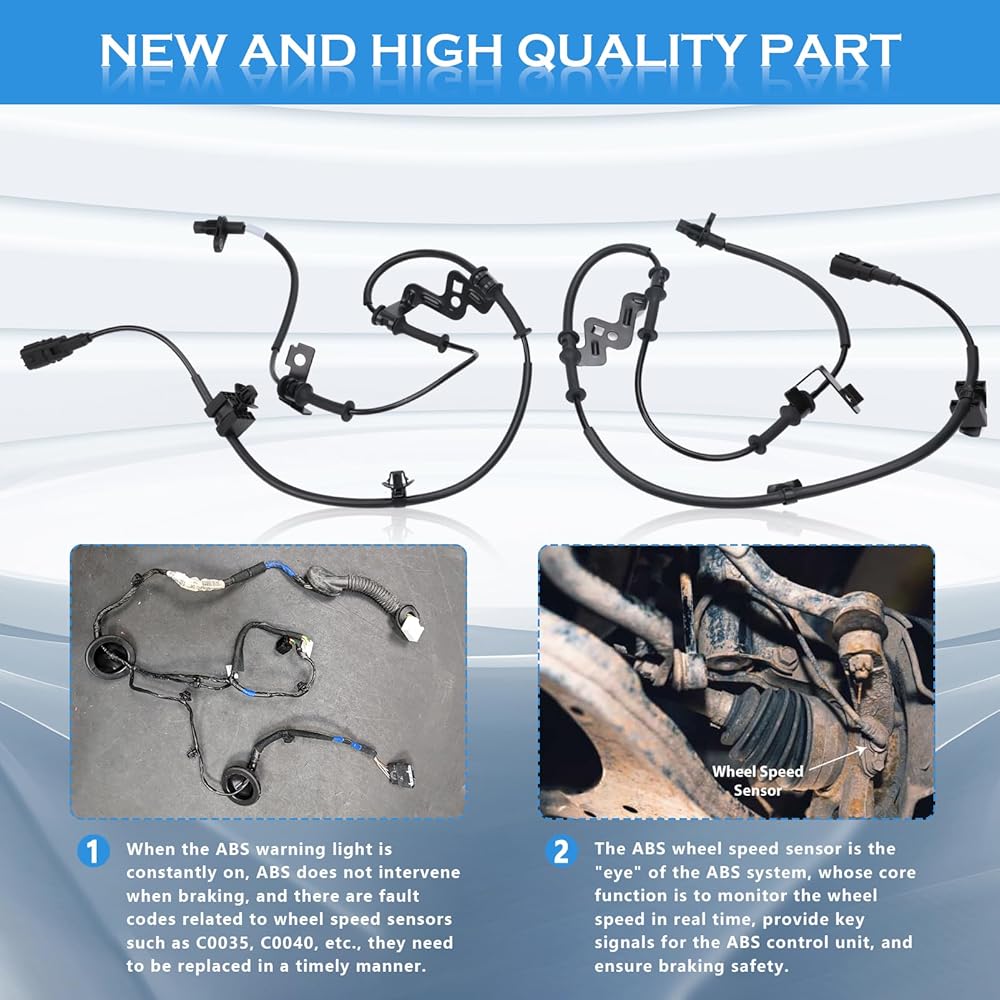 【Placement on Vehicle】:Icluding Front Driver side Speed Sensor & Wire Harness,Front Passenger side Speed Sensor & Wire Harness,Rear Driver side Speed Sensor & Wire Harness and Rear Passenger side Speed Sensor & Wire Harness.