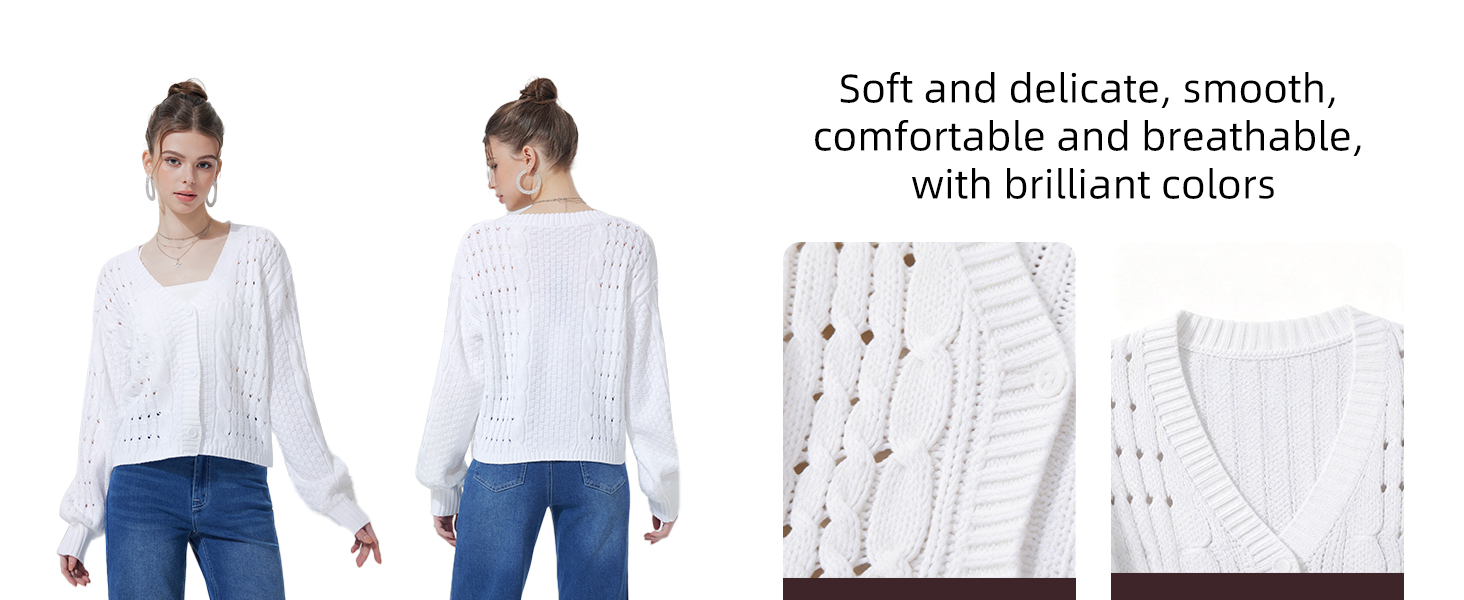 Features: Designed with a flattering v neck button front and hollow out knit this cropped cardigan adds modern style while the balloon lantern sleeves bring volume to classic womens cardigan sweaters