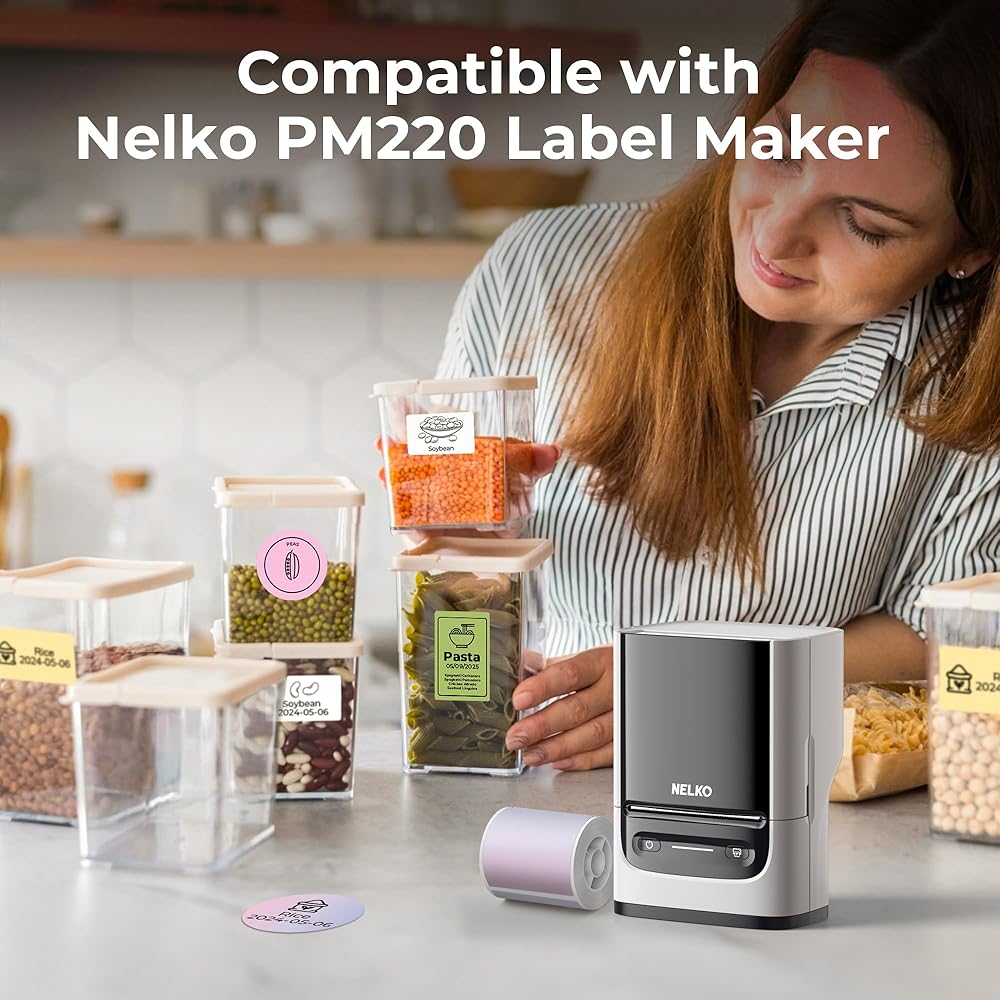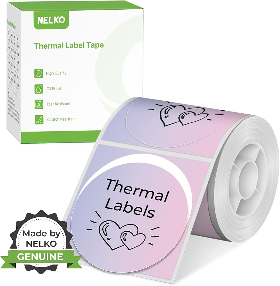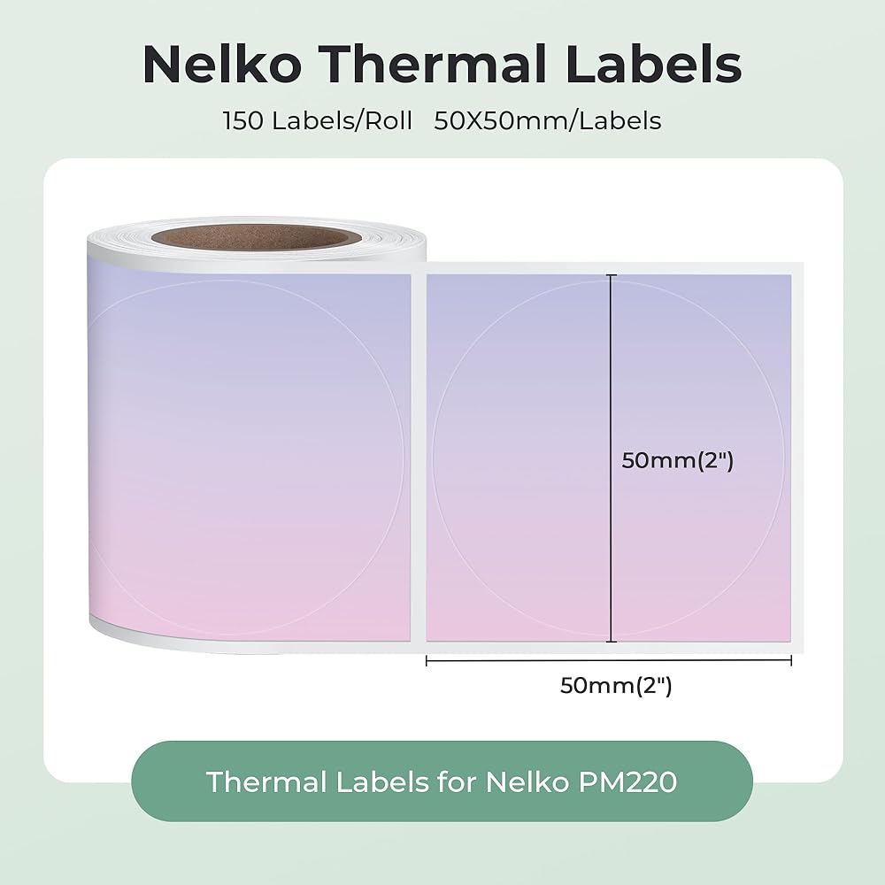 Specifications- Label Size: 2 inch (50mm). Quantity: 1 Rolls, 150 labels. Color: Pink-Purple Gradient. Genuine themal label tape compatible with Nelko PM220 label maker, it may not work on other label makers