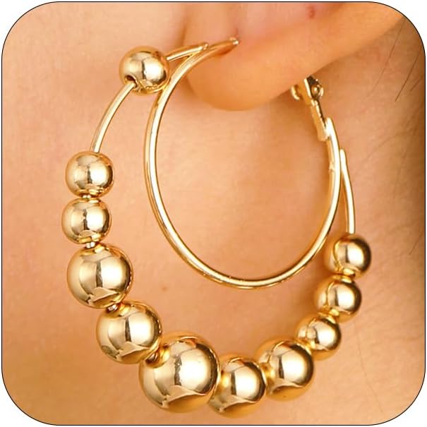 Y2K Beaded Big Hoop Earrings: These fashion beaded hoop earrings for women are double ball earrings accessories, the bold yet dainty gold circle hoops look that's totally in right now. The chunky double circle round beads ball earring is a vintage retro holiday party jewelry