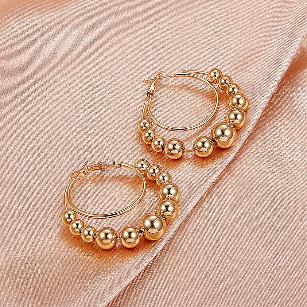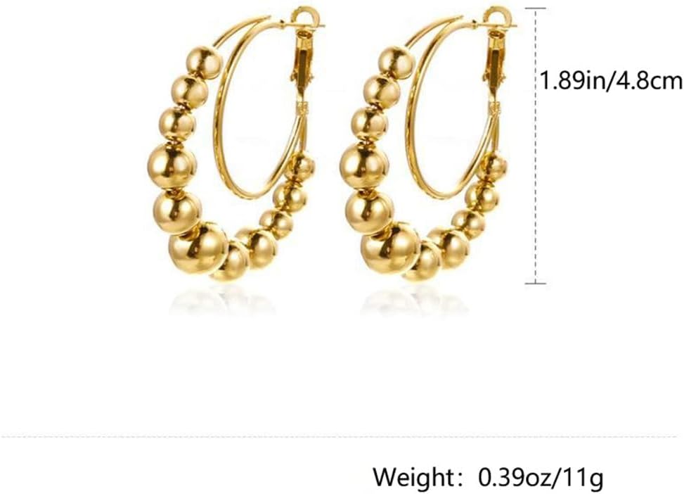 Lightweight and Size: These chunky gold circle hoops earrings are 0.39oz and 1.89in diameter, this fashion beaded hoop earrings are must-have for any Y2K party or as trending wedding earrings for bridal brides