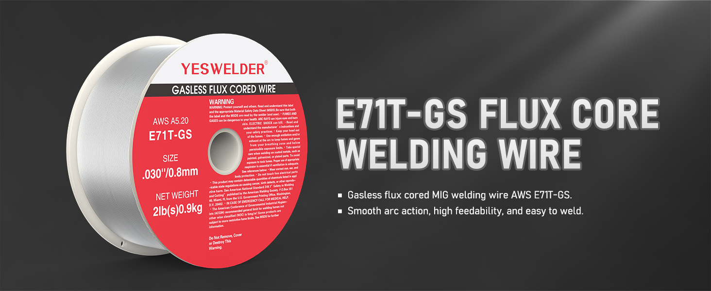 E71T-GS FLUX CORE WIRE: This self-shielding, AWS E71T-GS flux-cored wire excels due to its advanced core design, delivering exceptional arc stabilization and high feedability for effortless welding. The core also incorporates powerful deoxidizing agents, ensuring clean, reliable welds even when welding through light rust or mill scale.