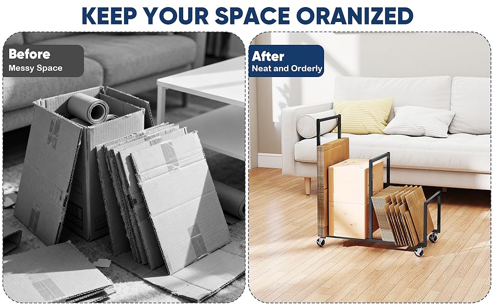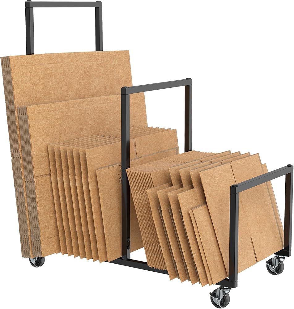 VERSATILE APPLICATION: This portable cardboard storage cart accommodates cardboard, boxes, poster boards, picture frames, folders, canvases, and more. It's suit for homes, garages, supermarkets, retail stores, print shops, offices, delivery stations, and similar settings