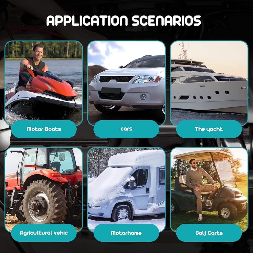 SAFE CHARGING-- The Car lifepo4 battery charger will automatically power off when fully charged, without any damage to the battery, which can increase the battery life. The other end of the charger also has a fan design, which can timely dissipate heat the charger to ensure the use effect of the product.