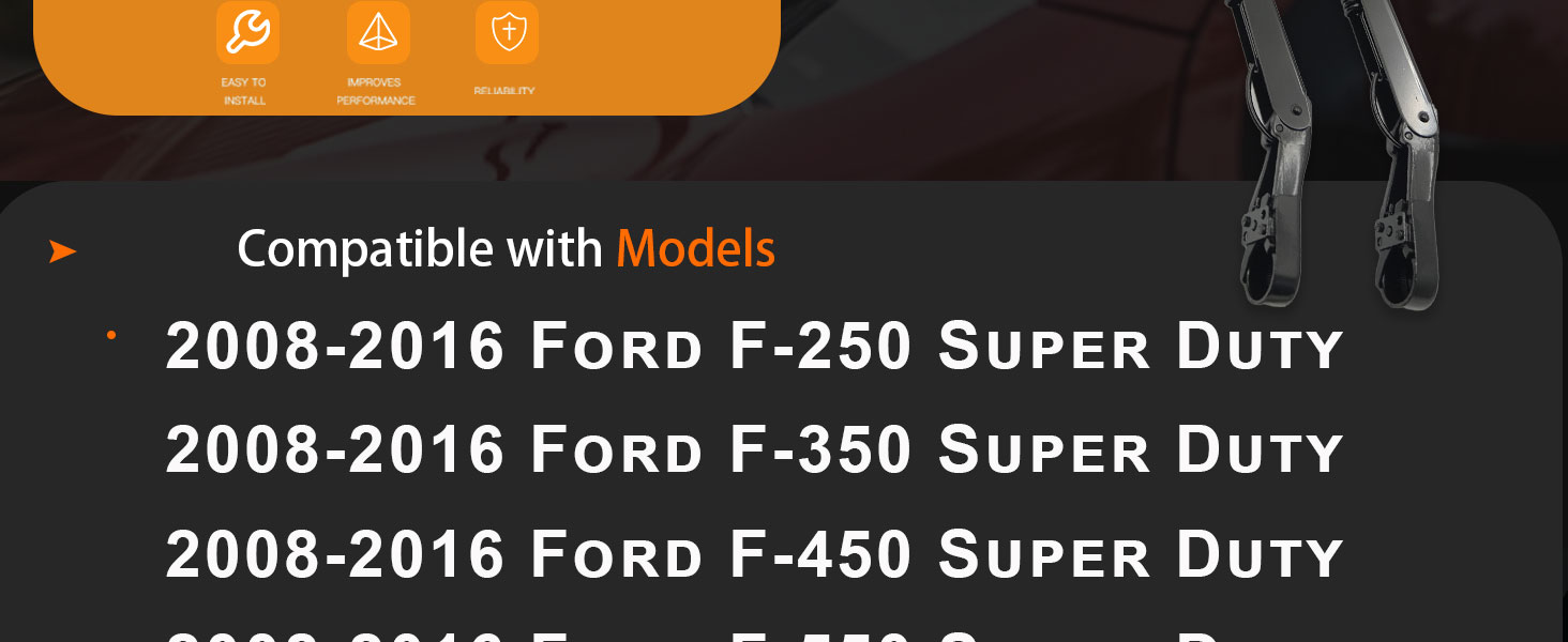 Suitable for Various Models: This high-quality 43516 43517 windshield wiper arm is designed for precise Compatible with Ford 2008-2016 F250 F350 F450 F550 Super Duty It ensures a secure fit and consistent performance meeting or exceeding OEM standards for reliable operation and smooth wiping in all conditions