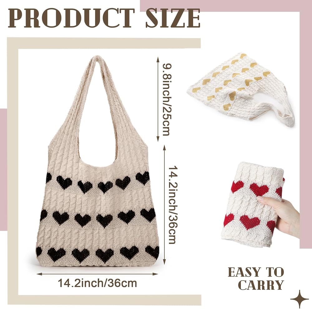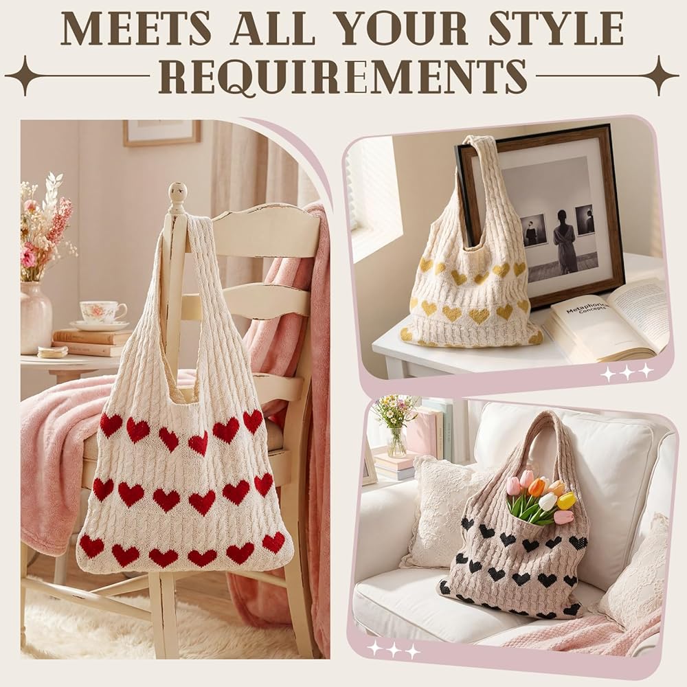 3-Piece Ready-to-gift Set: this set includes 3 uniquely designed beige crochet tote bags, each adorned with a different embroidered heart pattern (black, red, and brown); Mix and match effortlessly with various outfits to create versatile looks in an instant