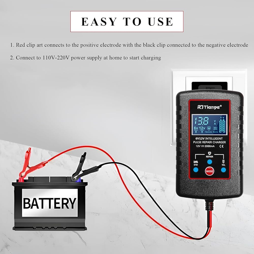Car Battery Charger, 6V/12V Smart Pulse Battery Repair & Desulfator with ASE Adapter Cable, Intelligent Automatic Trickle Charger Maintainer for Car Truck Motorcycle Marine