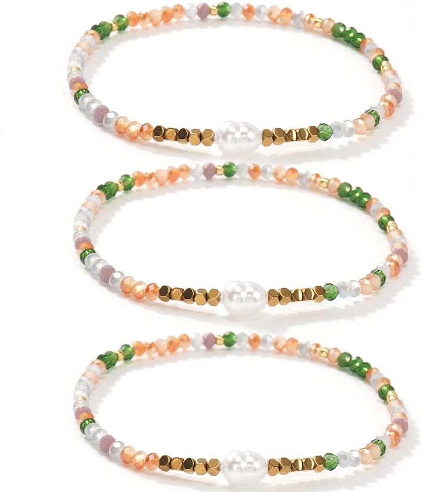 1.Package includes 3pcs stackable crystal beaded bracelets,chic and unique,you can wear one of them alone,or stack them together,enough choice for your daily outfits,offer you more options to match.