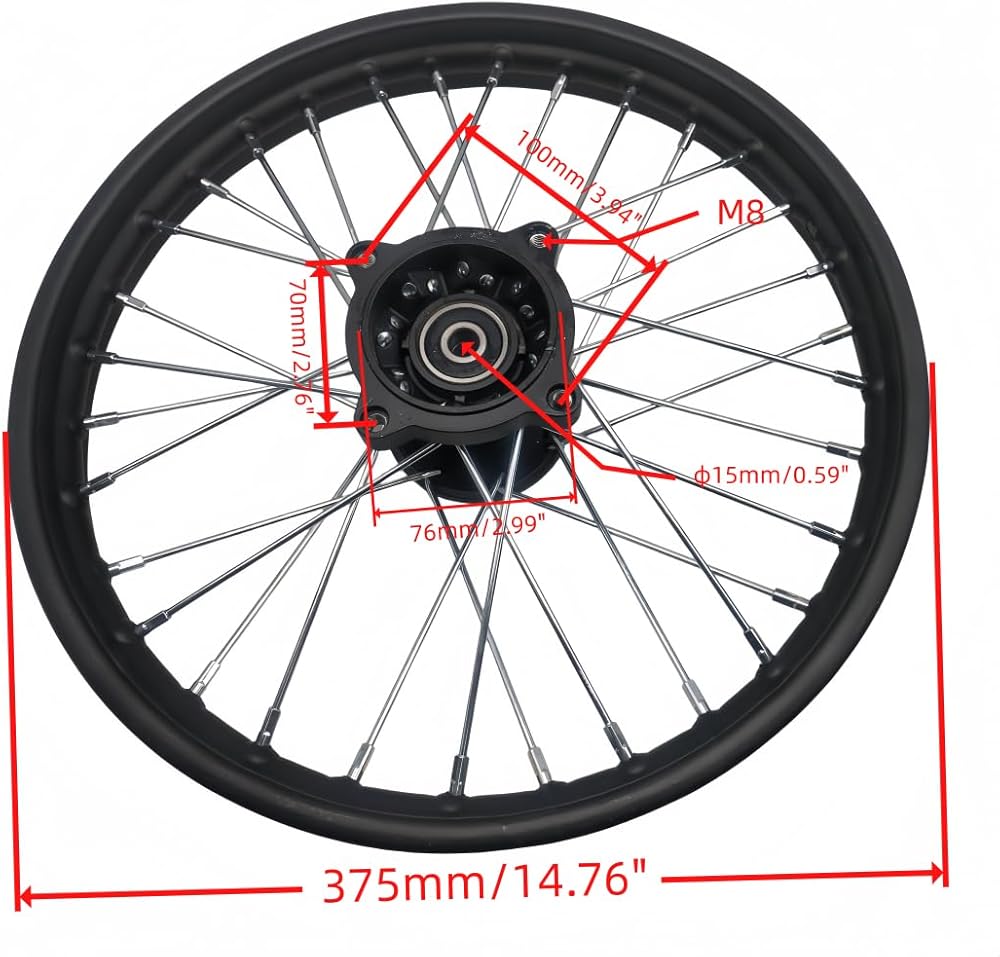 - Fits 110cc 125cc Dirt Bike 14'' Front Wheel