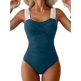 Features: Wide shoulder straps, heart neckline neck, push up, ruched. The one piece bathing suits feature retro style, it is fit for all the stature and very comfortable to wear and swim in