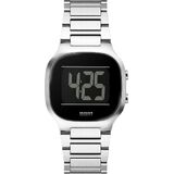 This digital watch pairs modern function with bold design, featuring a sleek cushion-shaped case and a stainless steel finish. Its clean digital display offers a minimalist look, making it a versatile piece for both everyday wear and elevated style.