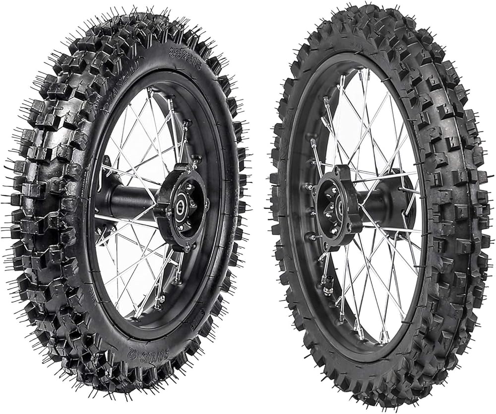 TDPRO Front 60/100-14 and Rear 80/100-12 Wheel Disc Brake Tires Rim With 12mm Bearing for Pit Dirt Bike