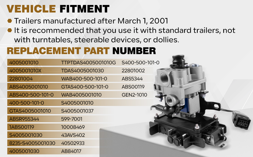 Compatible Models: Replacement for trailers produced after March 1, 2001. Recommended for use with standard trailers and do not use with turntables, steerables or dollies