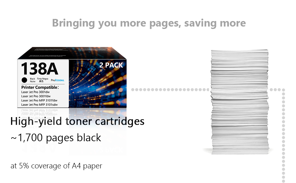 Printer Compatibility: Compatible with the 138A black toner cartridge (W1380A) for use with Laser jet Pro 3001dw 3001fdw, Lase rjet Pro MFP 3101fdw Printer