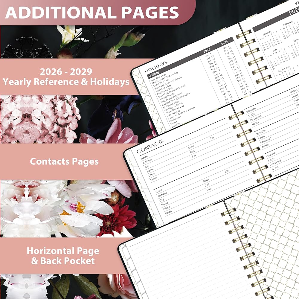 Sturdy & Lovely - The high-quality thick paper used in making this 2026–2029 3-Year Monthly Planner will help to prevent ink feathering and bleeding. The strong twin-wire binding and sturdy cover make this monthly planner more durable. We really hope that our beautiful Monthly Planner 2026–2029 will serve as a helpful tool for you.