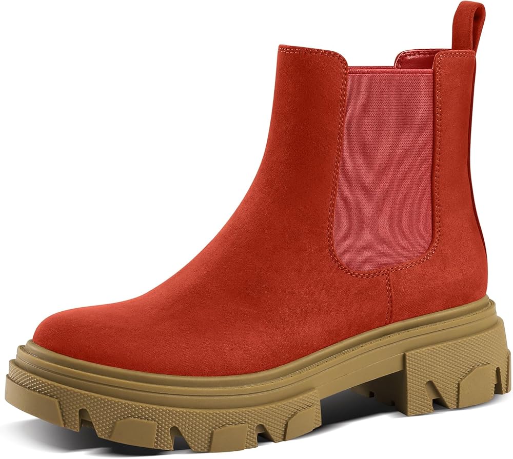 【COMFORTABLE SOLES】Womens classic chelsea boots are made with high quality material that hug your feet to provide superior heel and toe comfort all day. This short boot is perfectly designed for steady steps, thick lug sole, strong grip, and good anti-skid performance, improving the safety of walking. Give you just the right amount of stylish and sturdy sensibility.