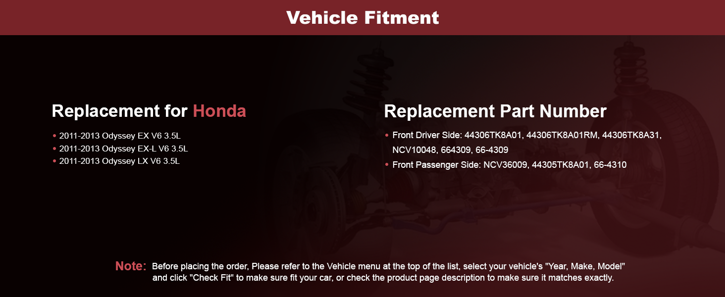 Reference Number: 44305TK8A01, 44306TK8A01, 44306TK8A01RM, 44306TK8A31, NCV10048, NCV36009, 664309, 66-4309, 664310, 66-4310. Anytek CV Axle Shaft Assembly is manufactured strictly according to the original standard.