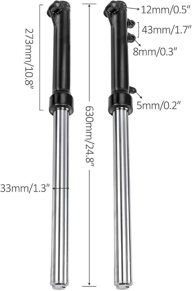 Please confirm the mounting dimensions, specifically the 630mm length and 33mm piston diameter, against your vehicle's current setup before purchase. Because front-end suspension geometry is critical for safety, we highly recommend that this propulsion steering and suspension assembly be installed by a professional motorcycle technician or an experienced mechanic.