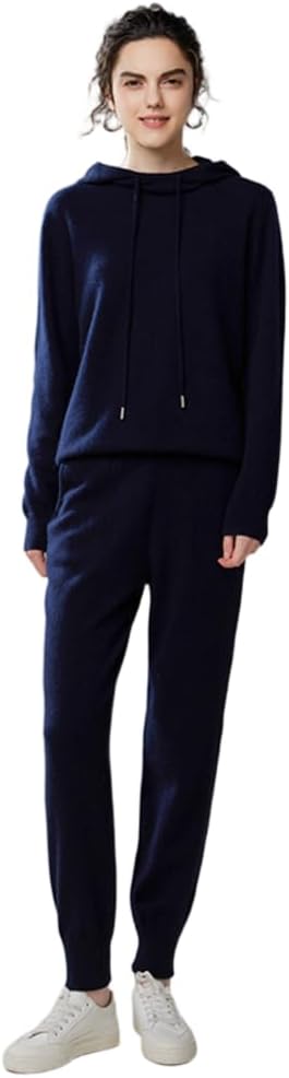 Elevate your loungewear with this sophisticated two-piece cashmere and wool blend set. The ensemble features a long sleeve hoodie sweater paired with coordinating pants, offering both style and comfort. The lightweight knit construction provides warmth without bulk, making it perfect for various occasions. The casual yet refined design combines the luxurious feel of cashmere with the durability of wool, creating an ideal balance of comfort and elegance. The hoodie sweater offers a relaxed silhouette while maintaining a feminine appeal, and the matching pants complete this thoughtfully designed set. Perfect for casual outings, working from home, or simply relaxing, this versatile set delivers both comfort and polish. The natural properties of the cashmere and wool blend help maintain comfortable body temperature while providing a soft touch against your skin.
