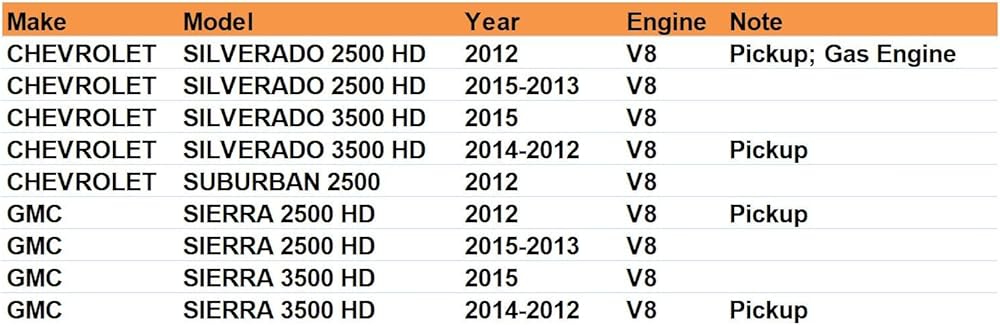 ✅ 【Application】Replacement for Chevrolet Silverado 2500 Hd 2012 Pickup; Gas Engine 6L,Silverado 2500 Hd 2015-2013 6L,Silverado 3500 Hd 2015 6L,Silverado 3500 Hd 2014-2012 Pickup 6L,Suburban 2500 2012 6L