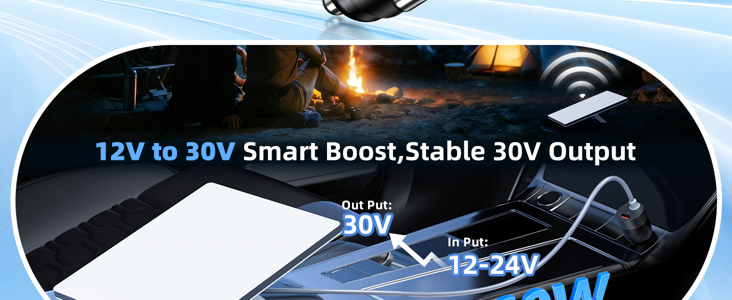 [ Intelligent Temperature Control for Safe Operation ] The starlink mini power adapter integrated cooling chip prevents overheating during extended use. An advanced temperature protection system automatically activates at 60°C, adjusting secondary device charging power to prevent overheating. This feature guarantees the stable operation of Starlink Mini in all environments, making this power adapter ideal for extended outdoor and vehicle use-perfect Starlink Mini car adapter and 12V to 24V booster for RV power converters or DC to DC chargers.