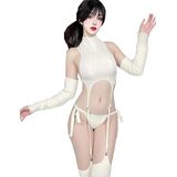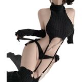Womens Anime Sweater Turtleneck Virgin Killer Cosplay Outfit Japanese Knit Crop Top with Garter Lingerie Set