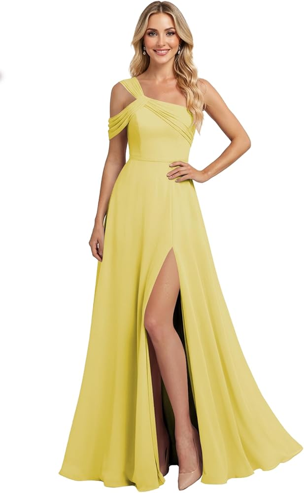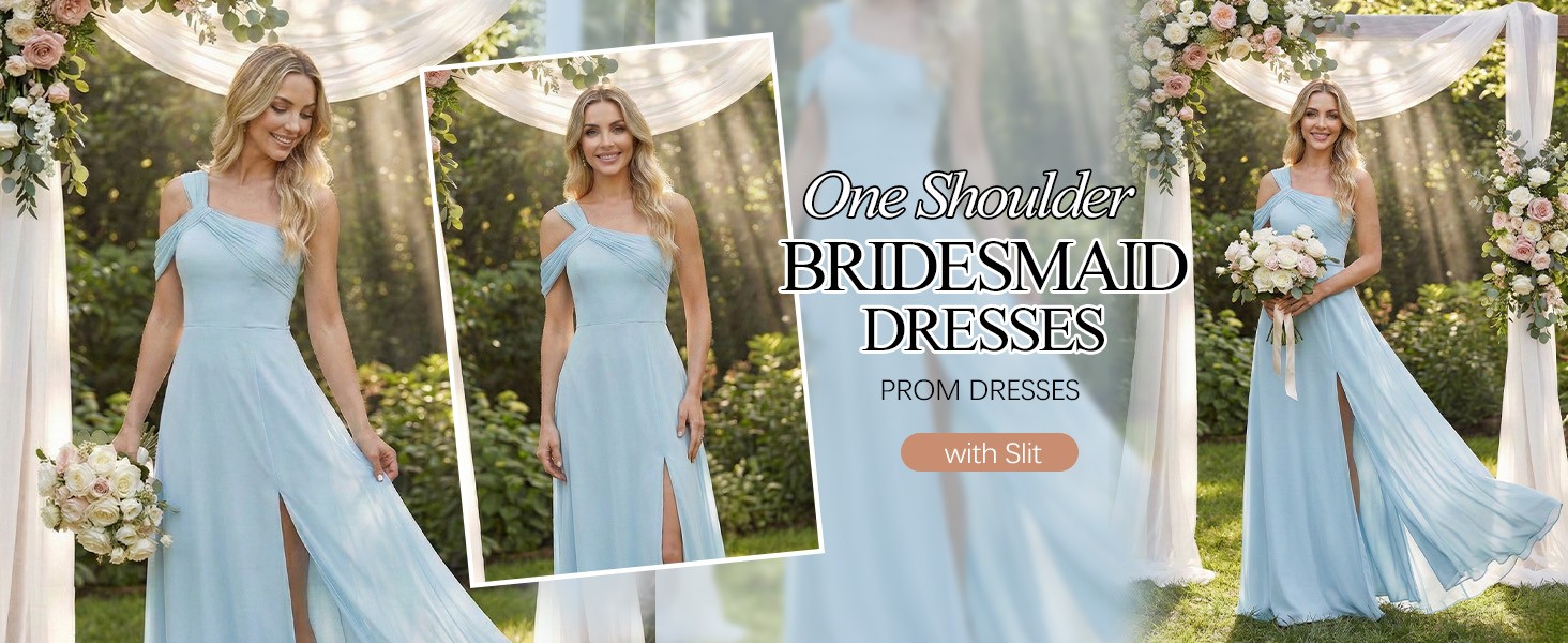 This long chiffon bridesmaid dress features one shoulder,pleats,criss cross,off shoulder,sleeveless,floor length, lace up back