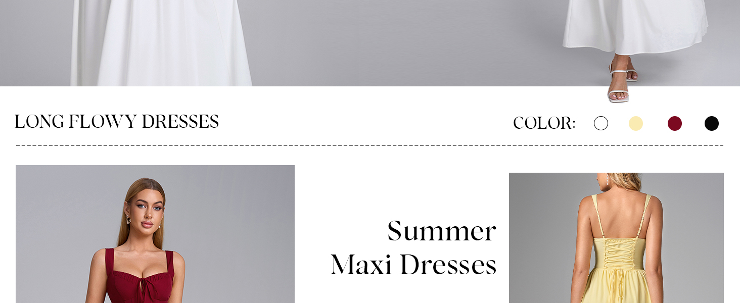 Color: Available in White, Red, Yellow, and Black—four colors ideal for white summer wedding guest dresses, red semi formal maxi dresses, yellow tea party dress, and black elegant evening dresses.