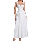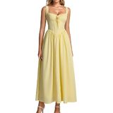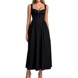 Features: This dress features a romantic sweetheart neckline, structured corset top, wide shoulder straps, and a lace-up back for adjustable fit. The built-in boning enhances your curves, while the flowy A-line hem flatters all body types. Ideal for those seeking a sweetheart long dress, corset long dress, vintage cottagecore dress, or flattering A-line sundress.