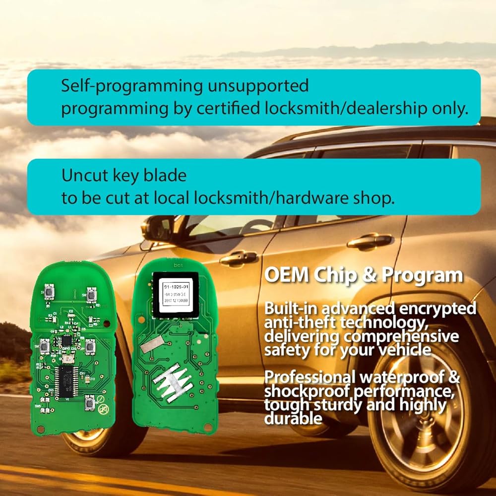 Programming: This is a brand-new, unprogrammed key, requires programming and cutting by a qualified locksmith or dealership