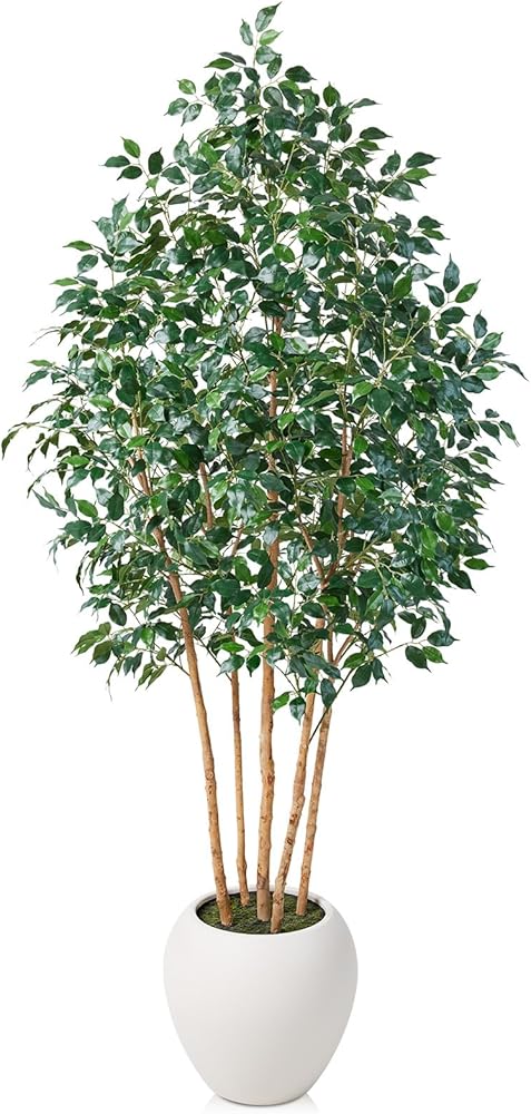 Lifelike Details & Durable Build Every leaf is meticulously designed to mimic real ficus foliage, while the natural wood trunk adds authenticity. Built to last, this large artificial plant resists fading and damage, making it a long-lasting decor piece for homes or commercial spaces