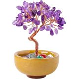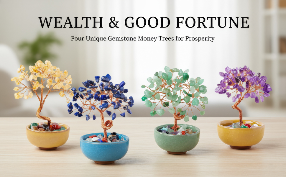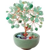 Green Aventurine Crystal Money Tree - Feng Shui Bonsai for Luck & Prosperity, Tabletop Decor for Home Office Artificial Trees with Green Ceramic Pot