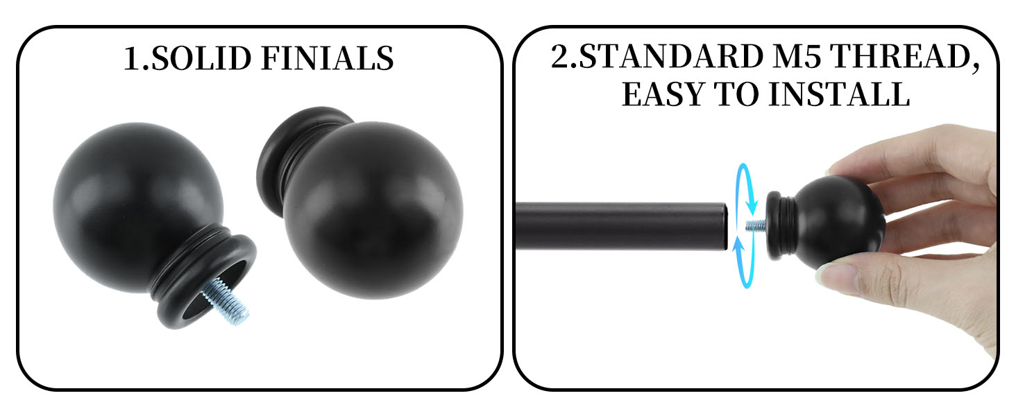 Material: These Ball Shape curtain rods finials are made of plastic and metal. Although the curtain rod end cap is small, but durable for long-trem use