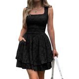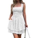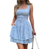 FANCY FEATURES: Flared A Line Short Dress with bonus pockets adds extra ease of use,it's great to put phone. Classic square neck mini dress highlights your charming neckline,and show off your sexy cleavage,it also good for small bust. And the sleeveless dress straps are wide enough to wear a regular bra,perfect for hot summer days.