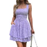 GENTLE CARE: S=US 4-6, M=US 8-10, L=US 12-14, XL=US 16-18. Square Neck Layered A Line Mini Dress is suit for machine wash in cold water with laundry bag,low iron,do not bleach. Please check our size chart carefully before order this floral ruffle short dress. Ruched drop waist mini dress is a must-have closet staple for summer!
