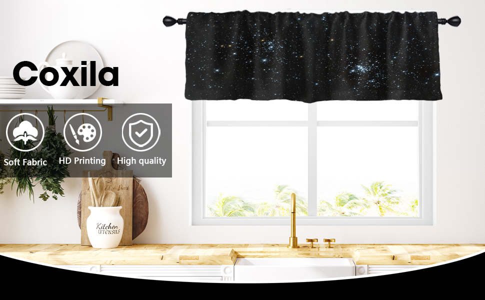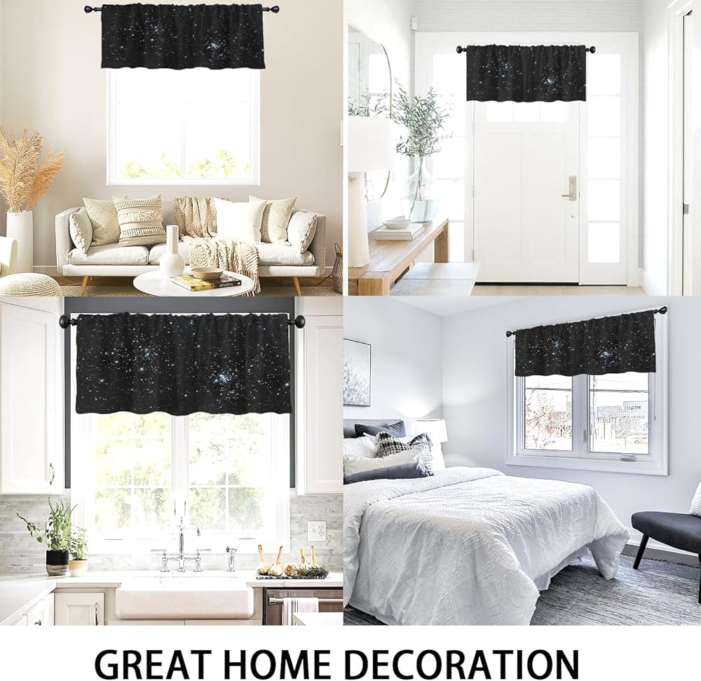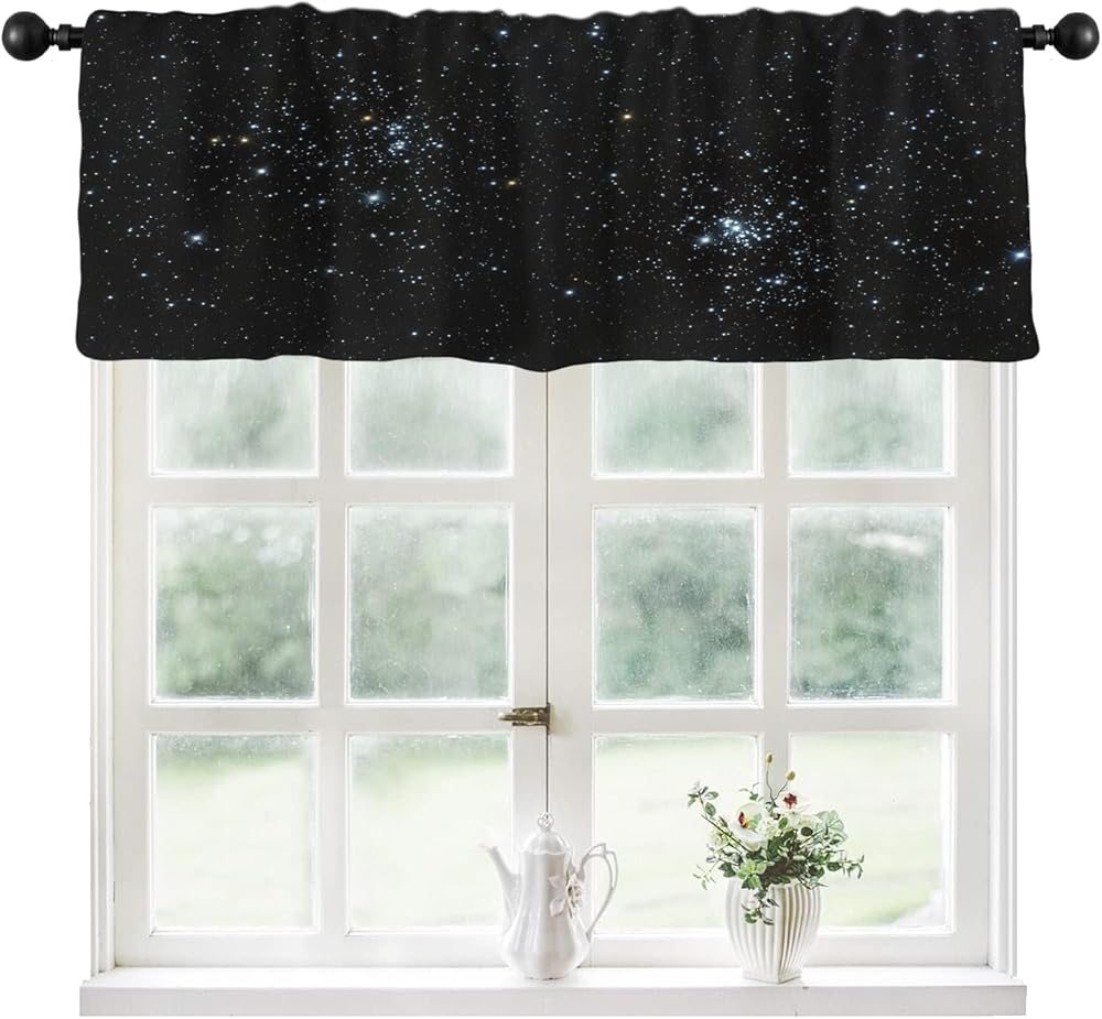 Coxila Galaxy Kitchen Valance Curtains 52 x 18 Inch Rod Pocket Outer Space Universe Nebula Kids Starry Stars Sky Boys Design Small Short Home Living Room Treatment Set of 1 Curtain Panel Drapes