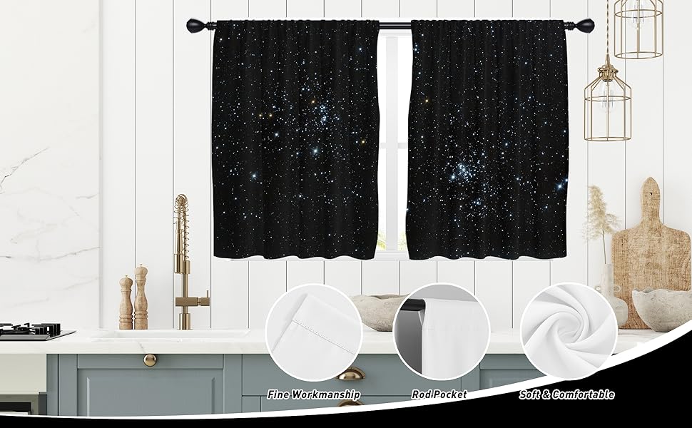 Included: One panel 52 x 18 inch ,total 52 inch width x 18 inch height with a 2.8-inch rod pocket can fit most window curtain rods