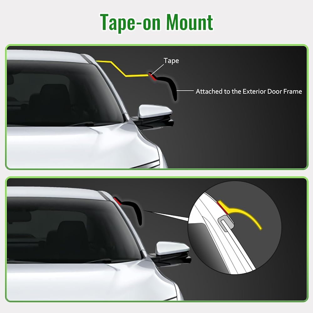 Tape-On Design: Features a hassle-free peel-and-stick application with automotive-grade adhesive for a secure fit, providing sleek OEM styling, strong hold, and all-weather ventilation without drilling or damage