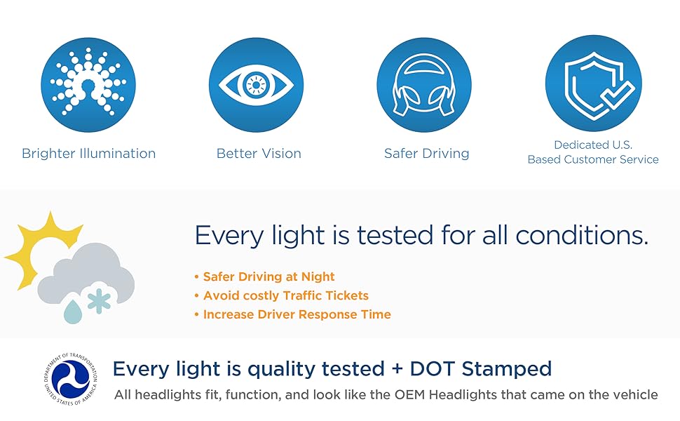 High Quality Driver and Passenger Side Halogen Type Headlights DOT and SAE stamped and meets all safety requirements