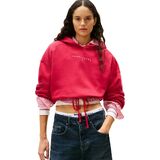 Introducing the Cropped Hoodies with Rhinestone Logo Detail from Tommy Jeans, featuring the iconic printed logo & rhinestone flag and cuff & waist details, crafted from a premium cotton for unparalleled comfort. Complete with elastic cuff, this lounge sweatshirt offers both style and functionality. The soft medium weight construction ensures warmth without sacrificing breathability, making it perfect for everyday wear. With its boxy silhouette and cropped length, this pullover hoodie strikes the ideal balance between comfort and style, flattering the silhouette while providing ample room for movement. Pair it effortlessly with your favorite Tommy Hilfiger shirts, tees, shorts, pants, jeans, jackets, or coats for a versatile and timeless look suitable for any occasion, whether casual or formal. Whether you're heading out for a day of leisure or hitting the gym, this sweatshirt is the ultimate go-to. Treat yourself or surprise a loved one with this versatile wardrobe staple, ideal for mothers, sisters, girlfriends, wives, daughters, or friends. Experience the unmatched quality and everyday style of Tommy Hilfiger with this must-have women's sweatshirt.