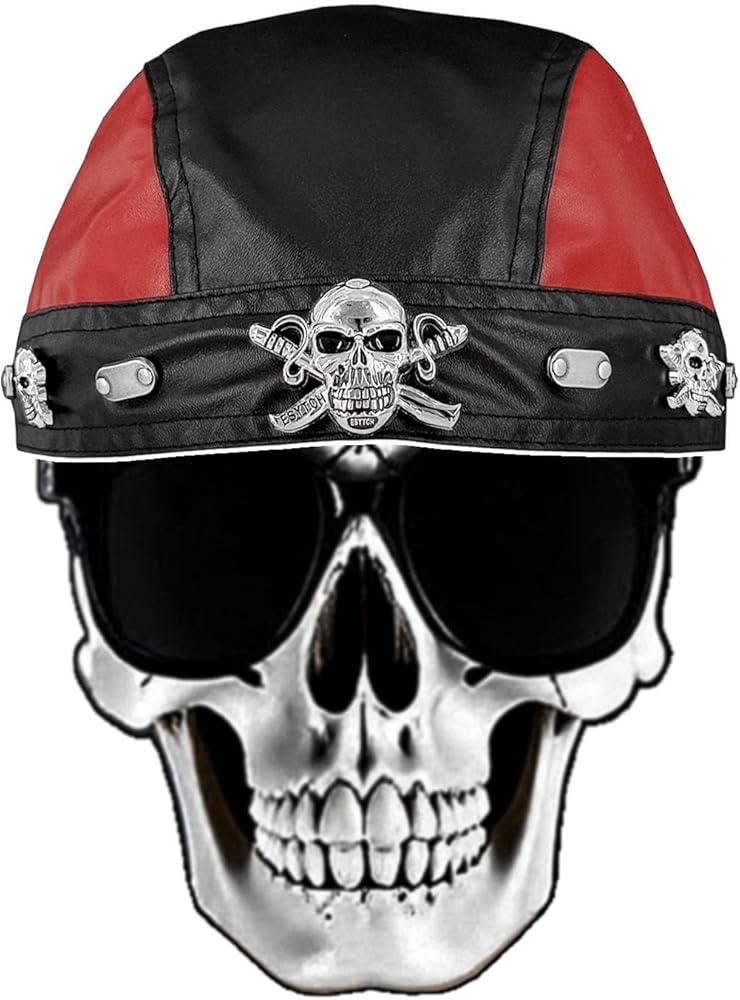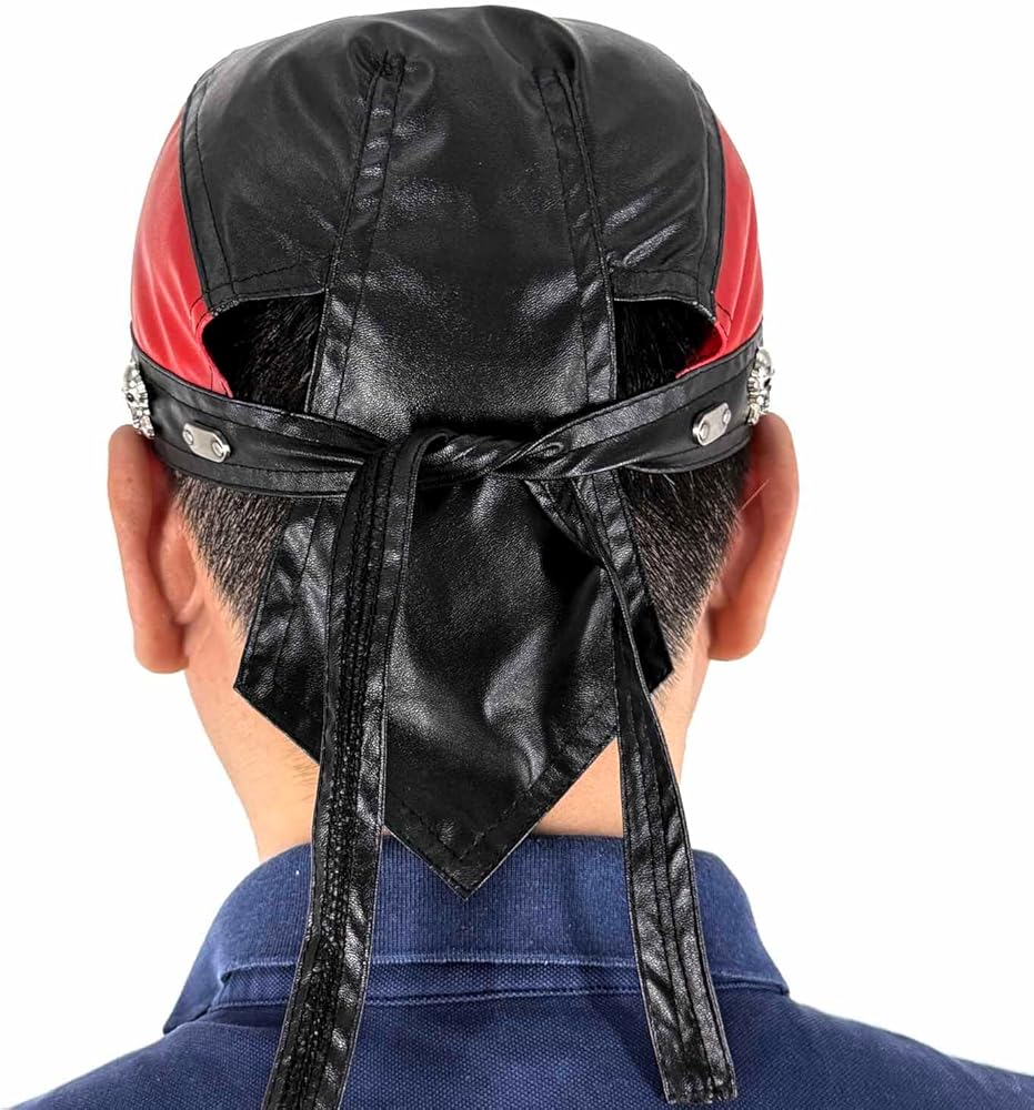Skull Studs Cycling Bandana Doo Rags Red and Black Splicing Cap Punk Rock Biker Party Leather Cap