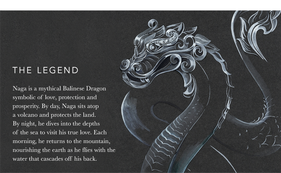 STERLING SILVER: A legendary symbol of love, protection and prosperity. Cast and carved entirely by hand. From our Legends Collection, the Naga was inspired by the mythical water dragon that protects the ocean's pearl. Wear facing inward to be bestowed with love and abundance, or outward for protection.